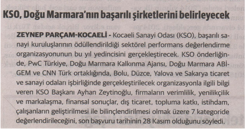 YSM Yazılım Genel Müdürü Sedat YAZICI’nın KSO Dergisi Odavizyon Hakkındaki Görüşleri; Kocaeli Sanayi Odası resmi yayını Odavizyon dergisini çıkaran ,hazırlayan Anadolu Basın Merkezi’ne; İstikrarla sürdürdüğü yayınları ve çalışma hayatı dolayısı […]